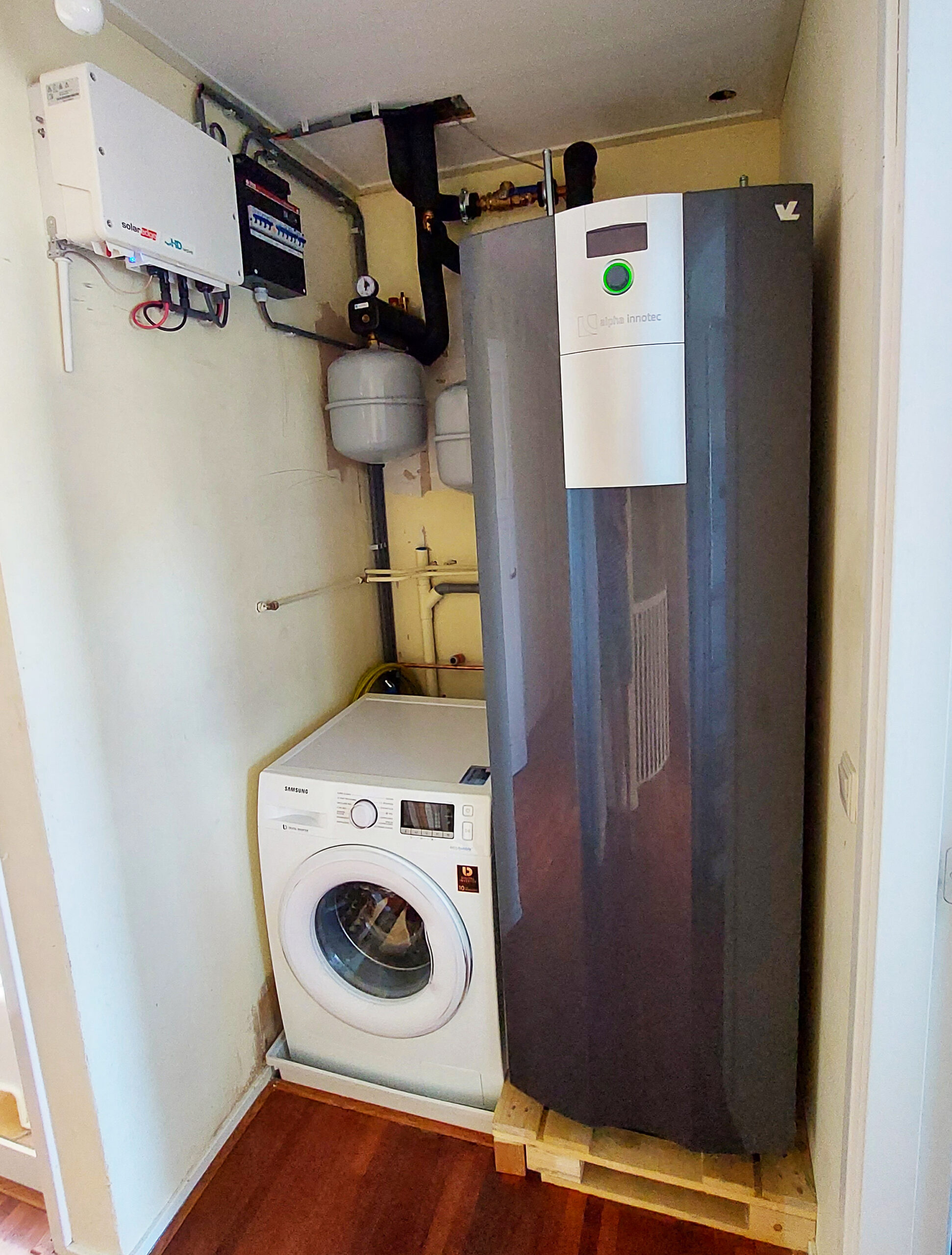Deze warmtepomp heeft tevens een ingebouwde warmwaterboiler van 190 liter waardoor we direct van het gas af konden gaan. Ons ultieme doel.